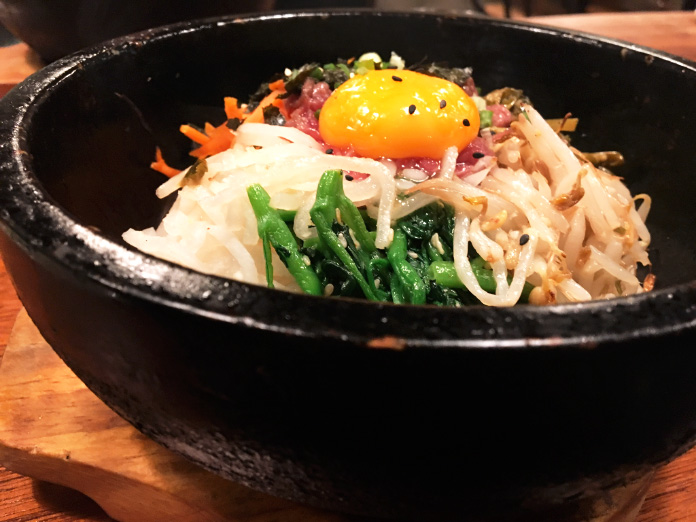 Si tu es un néophyte de la culture coréenne, sache que c’est un plat typique signifiant « mélanger ». Il est composé de riz, de légumes, de viande, d’un œuf… (il existe différentes recettes). Il est servi dans un bol chaud, ainsi tu assistes à la cuisson de ton plat en direct !